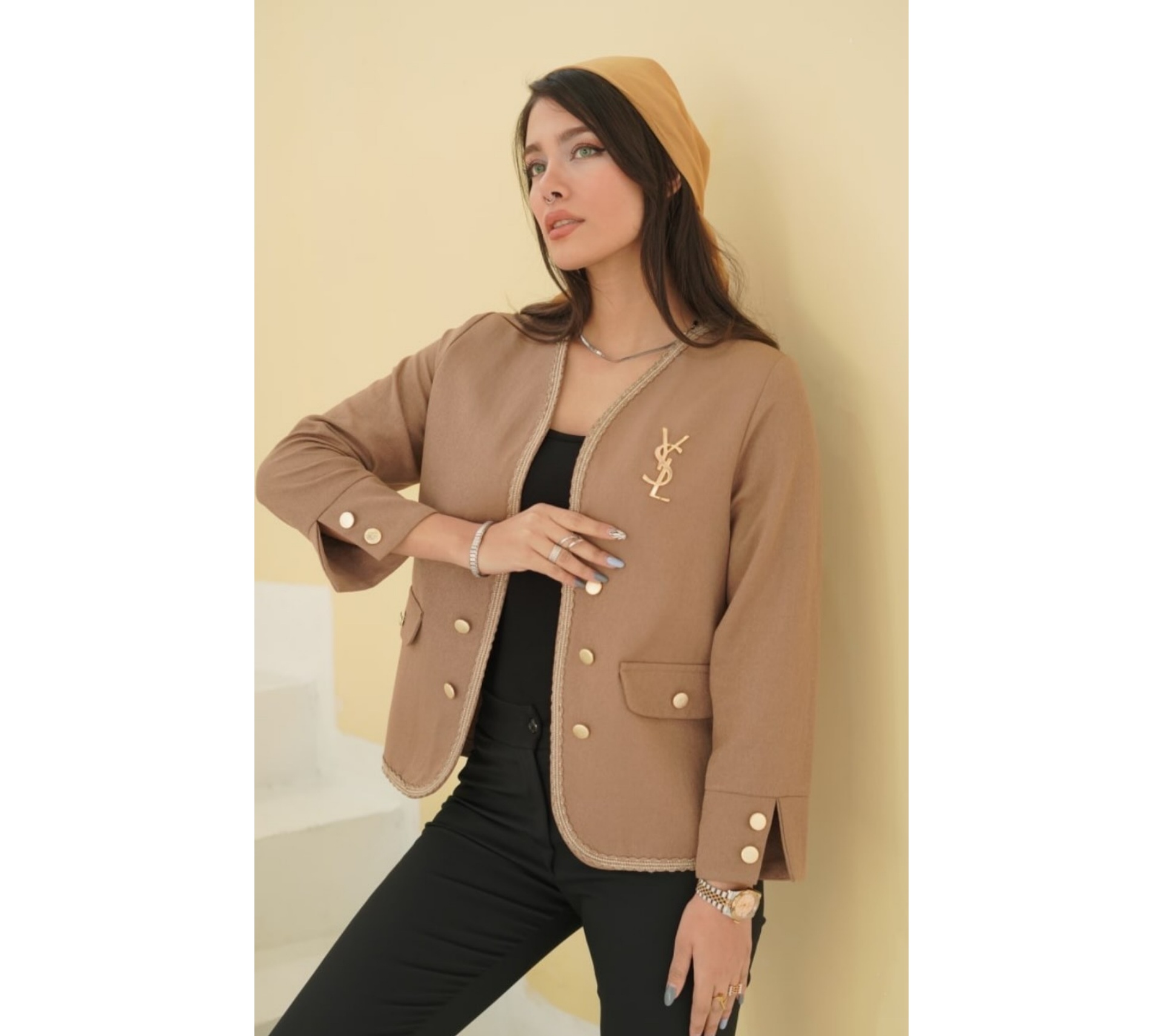 بارونی زنانه یقه شکاری جنس کتان زارا ضخیم