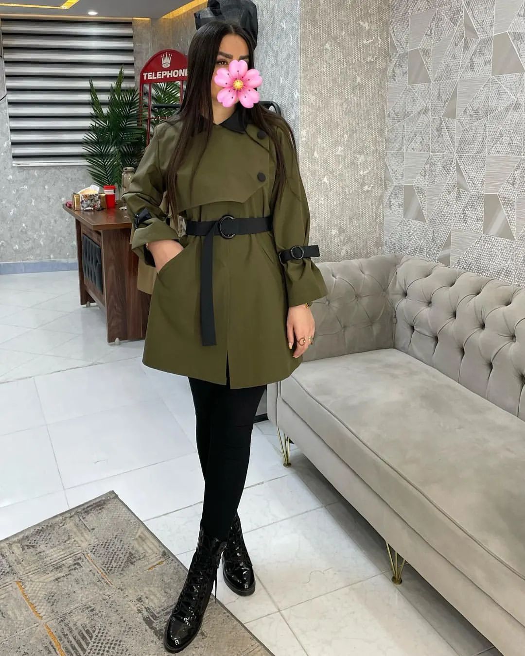 بارونی زنانه یقه شکاری جنس کتان زارا ضخیم