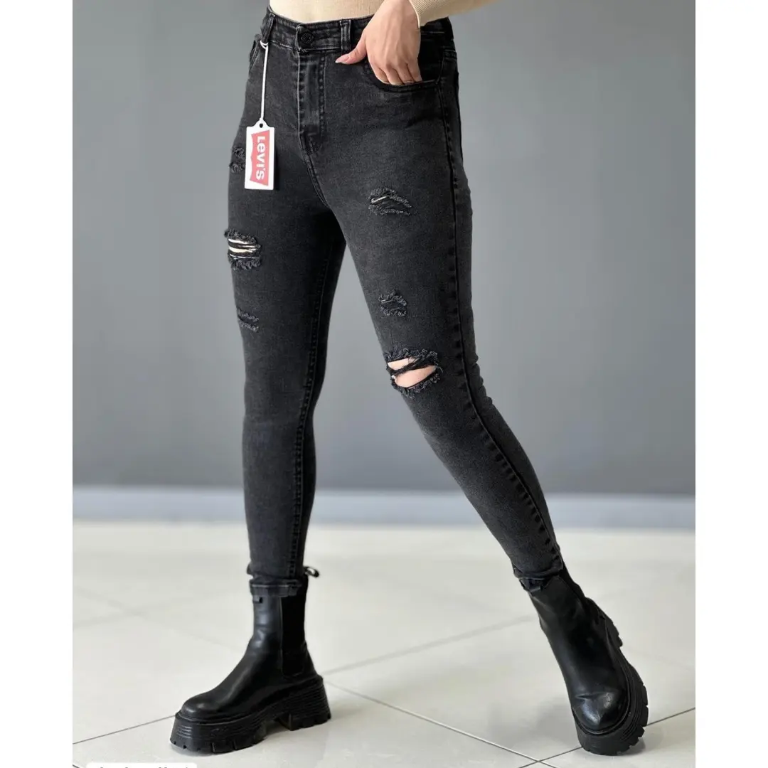 شلوار جین زنانه اسکینی زاپدار ذغالی