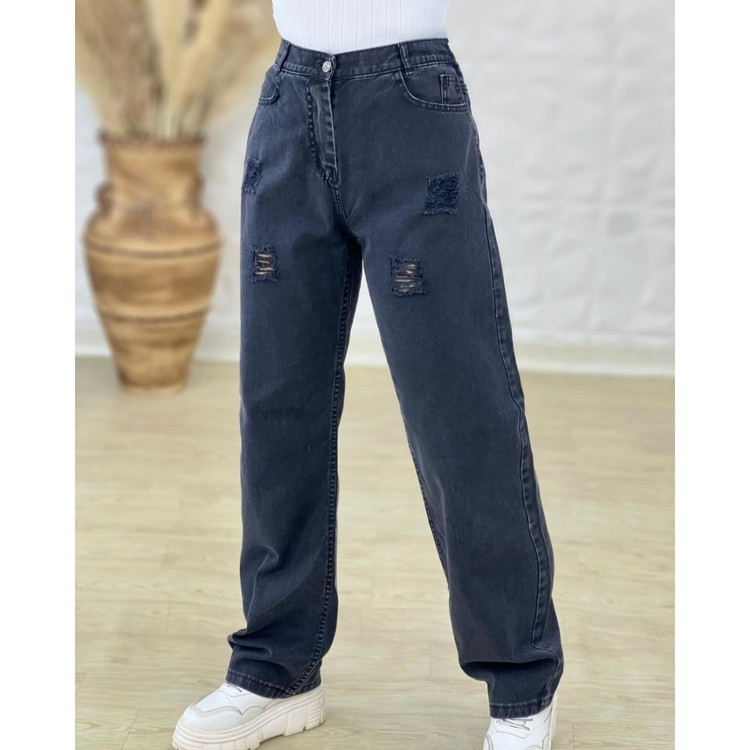شلوار جین نیم بگ ذغالی زاپدار